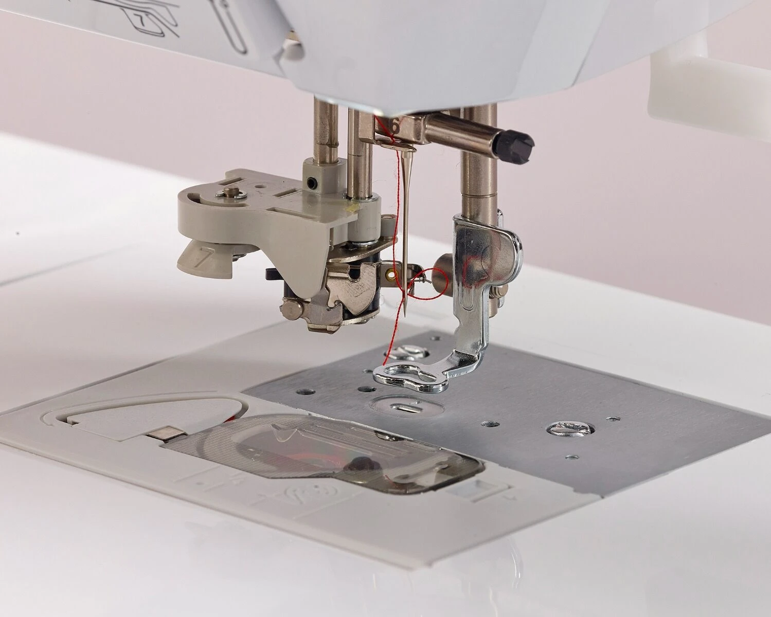 - Effortlessly raise the presser foot with a tap of the knee, leaving your hands free for control and precision in your sewing.