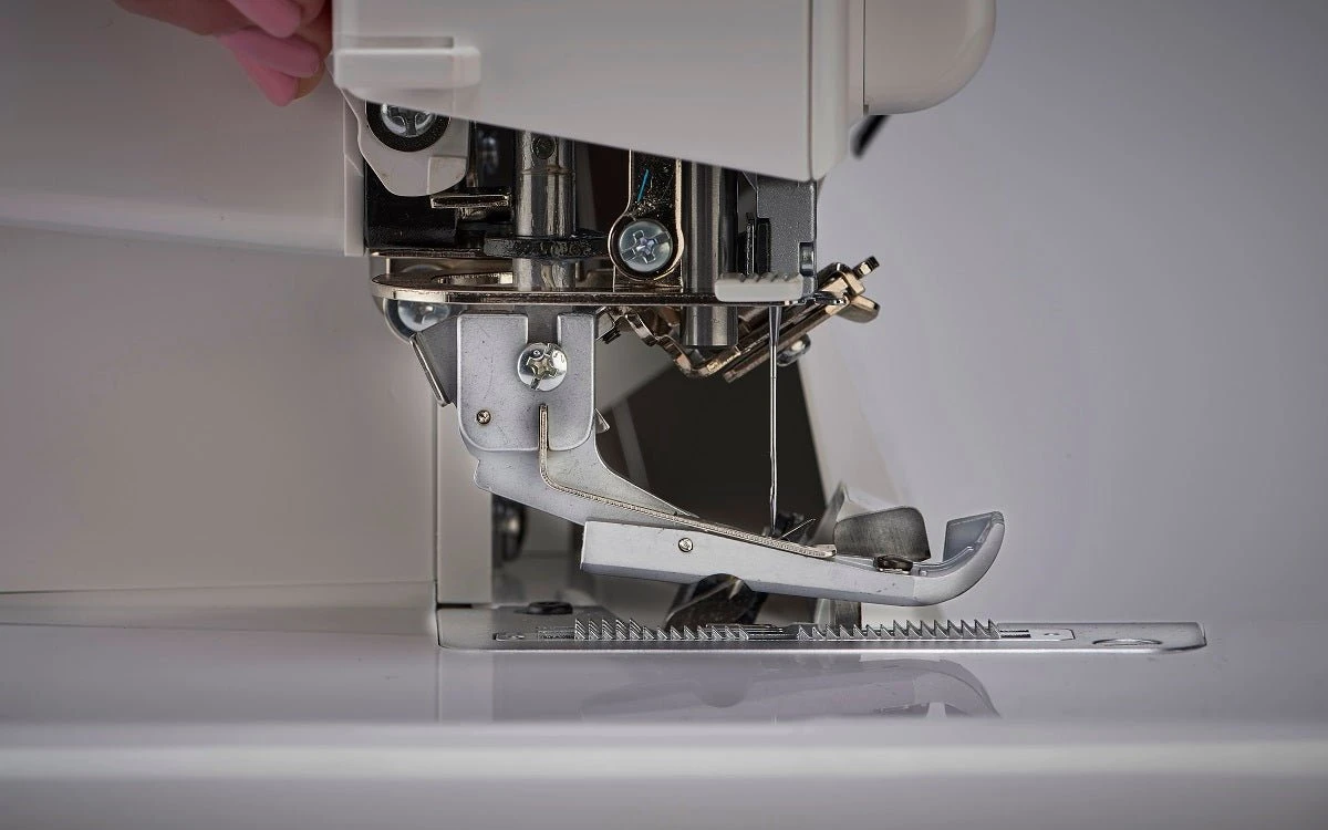 - We’ve taken the differential feed to a new level by adding a single-unit feed dog mechanism. This ensures stronger feeding as well as consistent gathering on all fabrics.