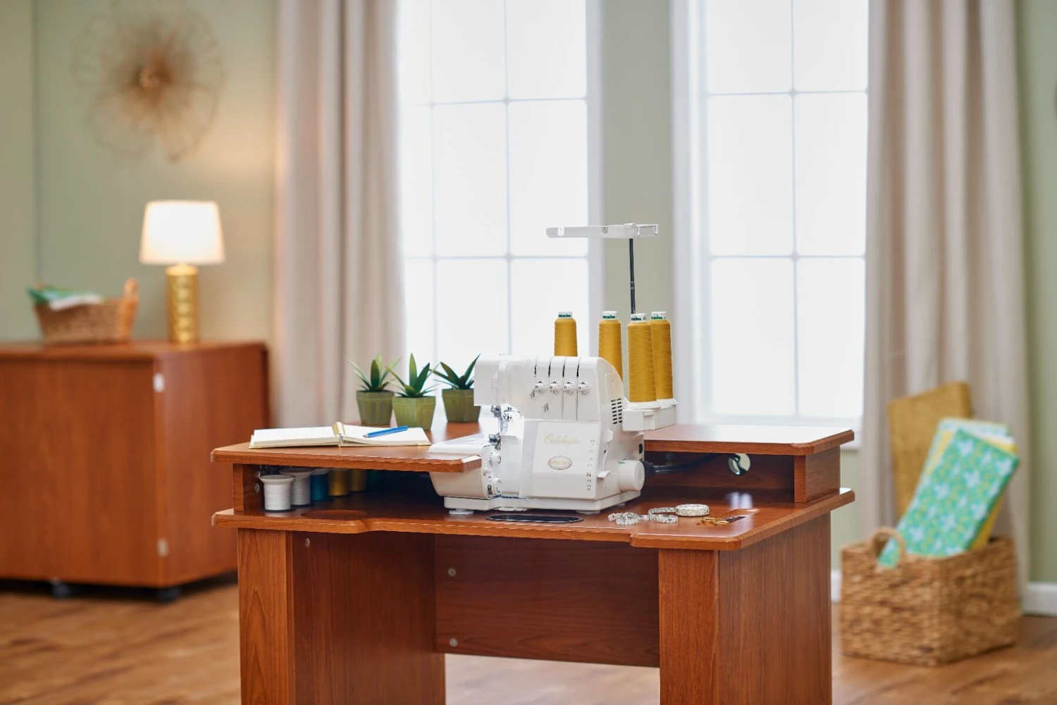 Finished another project? Time to celebrate! The easy-to-use Baby Lock Celebrate includes adjustable manual tensions, allowing for perfect stitches on any type of fabric. Jet-Air Threading™ threads your machine with the touch of a lever. Plus, Celebrate’s presser foot features a 6mm height that makes serging on thicker fabrics a breeze!
