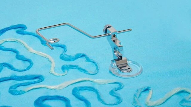 Easily Embellish projects with decorative yarns using the Baby Lock Couching Foot. The Guide holds your yarns giving your hands more control for free-motion.