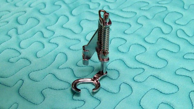 The built-in spring prevents flagging and helps keep fabric flat and under control. This foot is excellent for precise stippling, meandering and thread painting techniques.