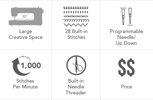 28 BUILT-IN STITCHES, 1000 STITCHES PER MINUTE: