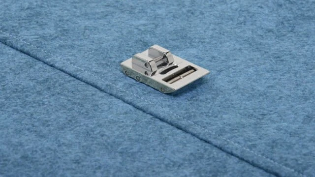This efficient roller foot is great for controlling materials that are difficult to feed, such as silk, leather, velvet, vinyl, micro fibers, and suede. The metal rollers help move the foot freely across various fabric thicknesses without any damage or impressions.