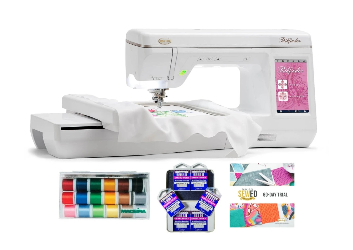 Your embroidery journey starts here! Let the Baby Lock Pathfinder embroidery machine lead you through new creative opportunities, with features that are perfect for both new and experienced sewers alike. Pathfinder features Baby Lock IQ Technology™ that works with the machine’s “brain” to make embroidery easier.