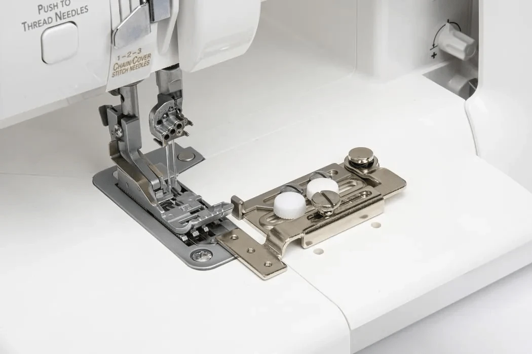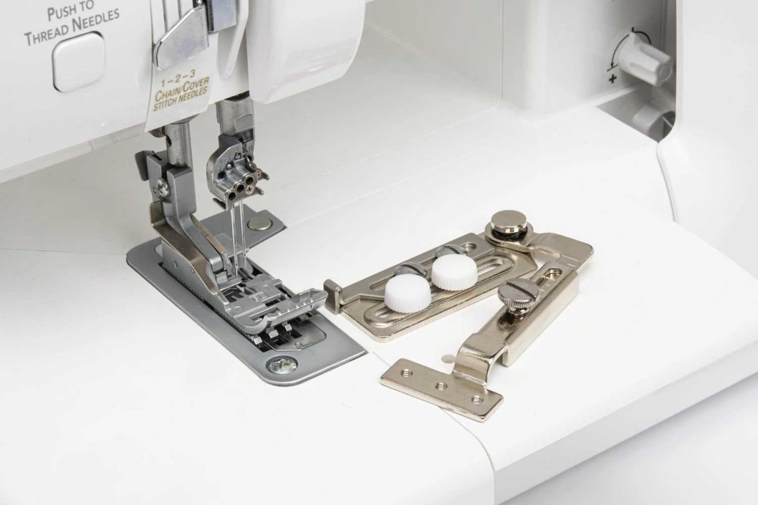 This adjustable guide acts as a platform for many of the Baby Lock serger attachments when the attachment is secured to the swing guide. With the attachment in position simply swing the guide away from the machine to easily position the fabric in the attachment. Move the swing guide toward the machine and the attachment and align it with the needle. In just a few steps the attachment is ready to use!