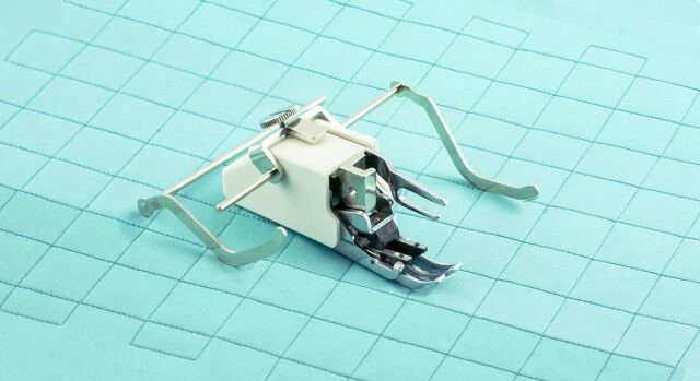 The walking foot is wonderful for sewing or quilting fabrics that stretch or slip easily, such as velvet and corduroy, to feed multiple layers evenly without shifting. You won’t believe how helpful this sewing machine foot is for matching plaids and other difficult patterns perfectly. The quilting guides are great for aligning exact rows of parallel topstitching that are equally spaced.