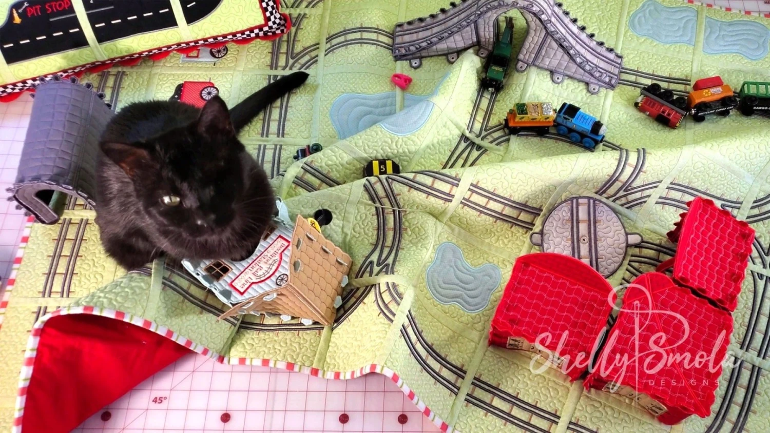Turn bedtime into adventure with the Bedtime Rail Line Quilt Embroidery Designs. This playful set is perfect for designing your own custom railroad-themed quilt—ideal for children or train-loving grown-ups alike!