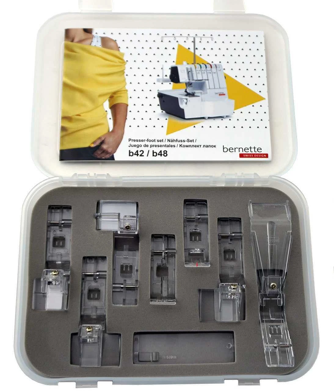 Do more creative techniques with your bernette serger when you add additional feet. These feet are compatible with Bernette Funlock b42 / b48 / b62 / b68 overlocker machines.