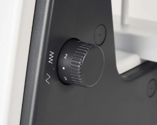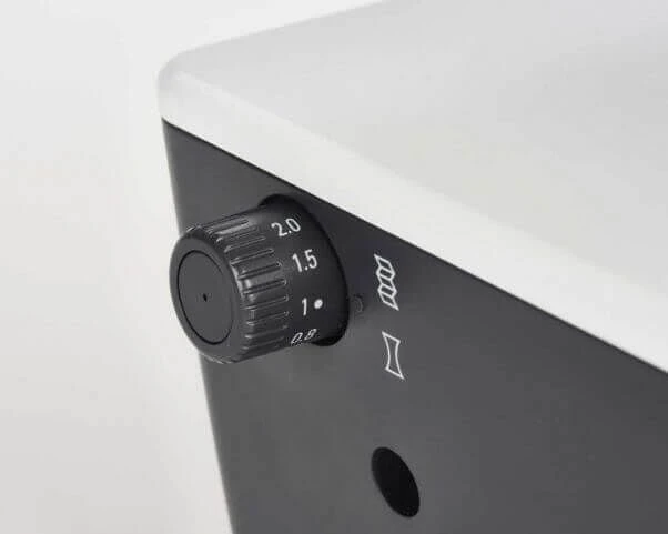 The differential feed always ensures smooth seams with knitted fabrics and crimp-free seams with fine fabrics. By adjusting the setting between 0.6 and 2, however, deliberate crimping can also be created, e.g. for decorative ruffles.