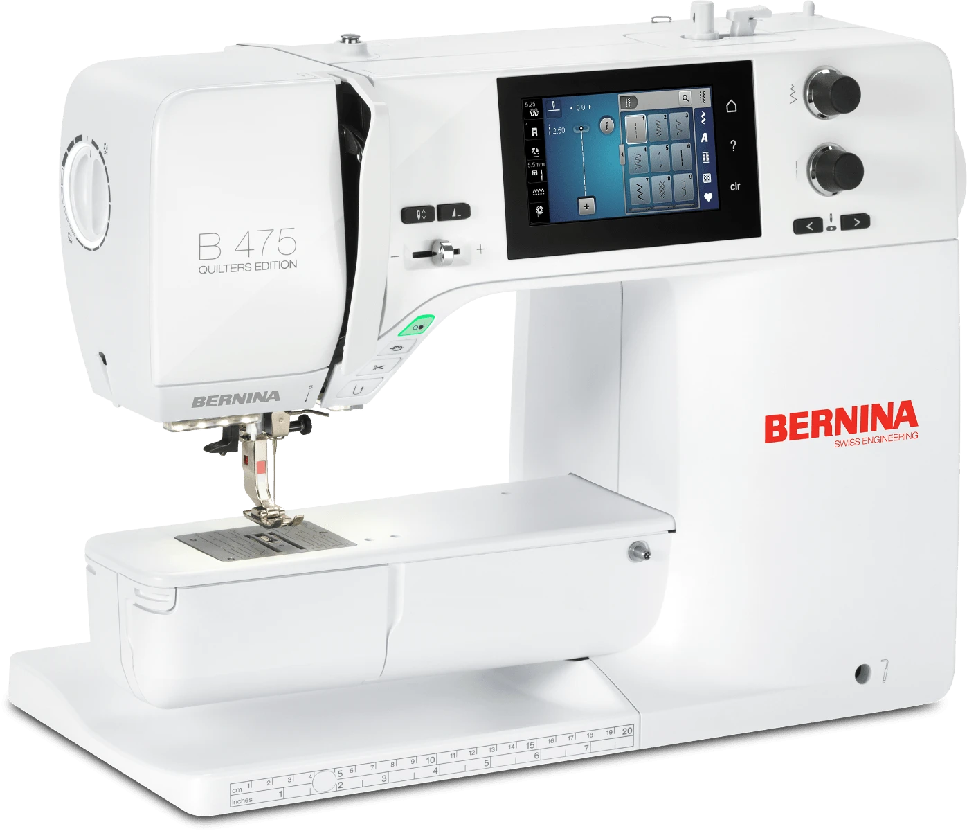 Everything a quilter needs from perfect stitches to special quilting feet to a small size with big space for quilts, the Bernina 475QE is chock-full of all the best quilting features. Talented. Energetic. Creative. Bold. The 475QE is powerful, easy to handle, fast and magical. Day in and day out. And her BERNINA never fails to deliver.Â