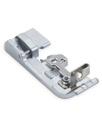 The Cording Foot is used e.g. for sewing thin cord, wire, fishline, perle yarn or fine yarn into a rolled hem. Ideal for reinforced edges, decorative ruffles and shapeable knitted bands!