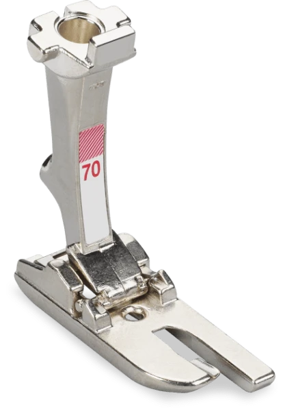 Lap Seam Foot #70 enables you to sew precise lapped and flat-felled seams in light and medium weight fabrics.