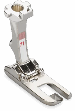 Bernina Lap Seam Foot #71 is specially designed for crafting strong, precise lap seams in medium to heavy-weight fabrics. It’s ideal for creating flat-felled seams on jeans, outdoor gear, and sportswear. With its specialized design, both raw edges are enclosed—making it perfect for reversible clothing items.