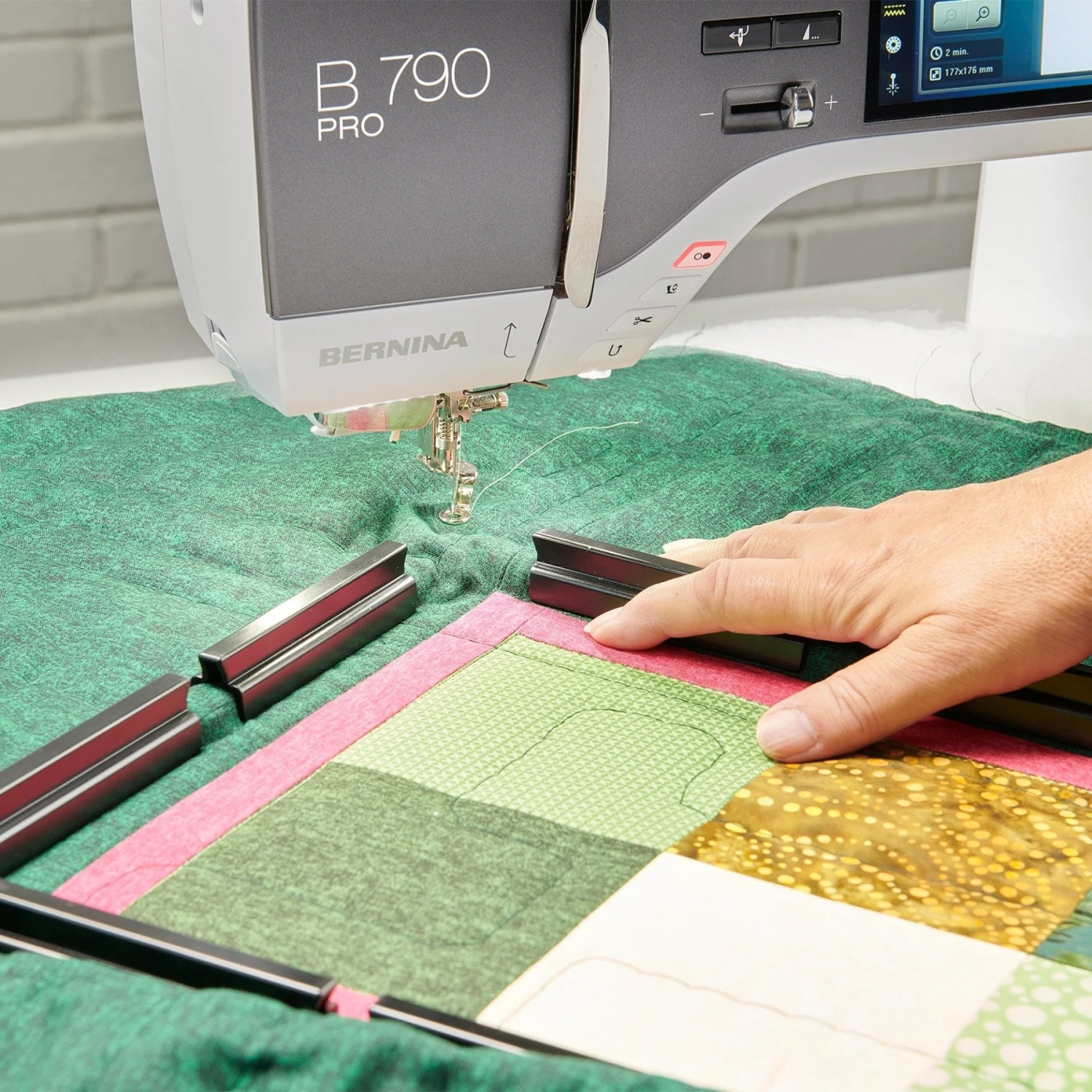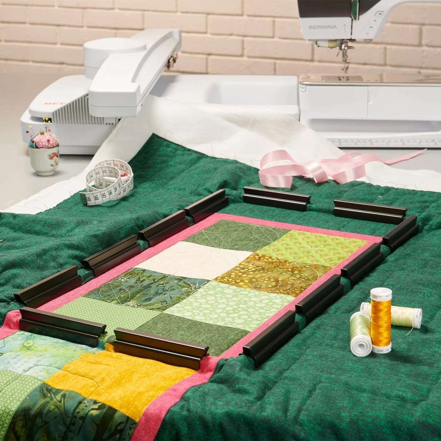The Bernina Medium Clamp Hoop for Borders is perfect for creating extra-large quilt motifs, border patterns, and design combinations with precision. Its durable construction and repositionable clamps make hooping simple, while saving stabilizer and fabric. A clamp removal tool and template are included to make setup even easier.