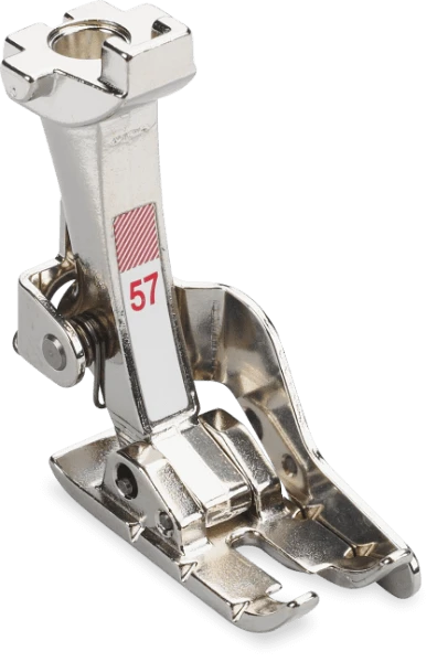 Patchwork foot with guide #57 differs from Patchwork foot #37 only in that it has a built-in seam guide along the right edge of the foot. It is therefore particularly suitable for patchwork projects with 1/4β (6mm) or 1/8β (3mm) seam allowances.