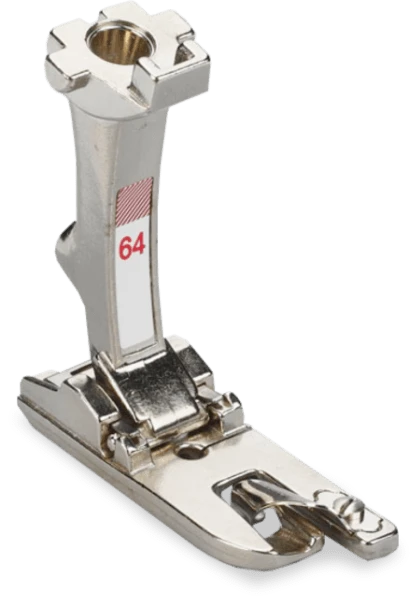 A guide in the presser foot sole guides the turned-under fabric to the needle hole, where the fabric is sewn with a straight stitch into a sturdy 4 mm wide hem. The finished hem then easily advances underneath the foot, enabling smooth sewing.