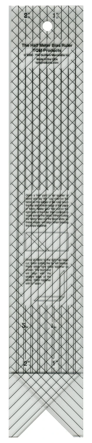 The Bias Ruler (14″ x 2.5″) is the quickest, easiest tool for cutting perfect bias strips. Whether you’re working with a fat quarter or a half-yard, this ruler helps you maximize fabric yield and get clean, consistent cuts at widths ranging from 1/4″ up to 2.5″.