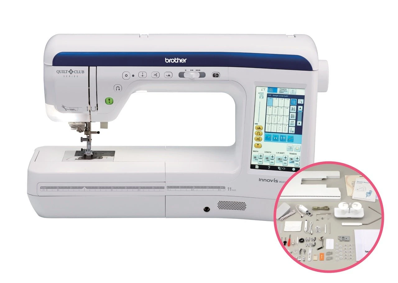 Combining premium features such as 729 built-in utility and decorative stitches (plus an additional 30 on the included CD), a 7″ LCD touchscreen display, and a generous 11.25″ workspace, the BQ3100 is designed for quiltmakers and sewists who are dreaming of doing more with their machines.