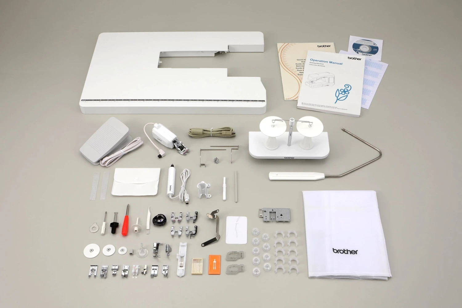 - Quilters Bundle Deluxe Included- Contains over $500 (MSRP) worth of attachments and add-ons for your BQ machine; this includes the following: A Wide Table, an Open Toe Foot for MuVit, a Stitch in the Ditch Dual Feed Foot, a Dual Feed ¼” Guide Foot, a Dual Feed Quilting Guide, a Couching Dual Feed Foot, and a 2-Spool Thread Stand.