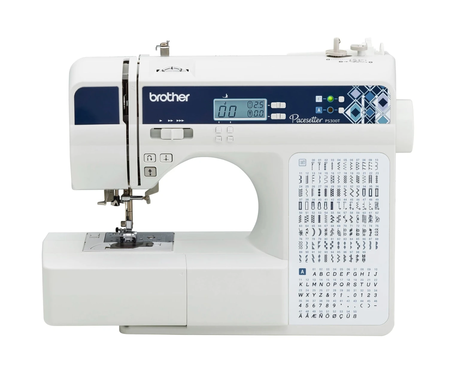 The PS300T is a great addition to your sewing room! This computerized sewing machine comes with 100 built-in stitches including 8 styles of one-step buttonholes and one sewing lettering font. Bring your fashion and DIY dreams to life with an easy to use needle threading system and bobbin winding system.