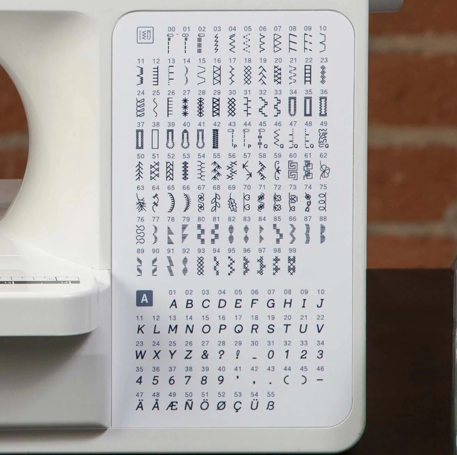 - Built-in Stitches and Buttonholes – 100 built-in sewing stitches, including 8 styles of one-step buttonholes, and 1 sewing lettering font.