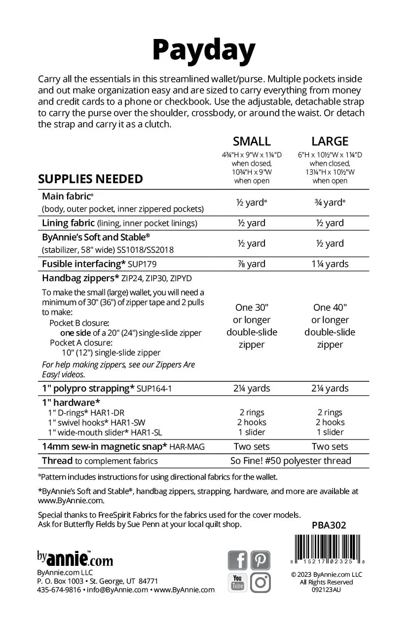The ByAnnie Payday Wallet/Purse Pattern is your go-to project for crafting a sleek and practical wallet or mini purse. Available in two sizes, both feature a fold-over flap with hidden magnetic snaps for a clean finish and secure closure. The design is loaded with smart storage options to keep you organized wherever you go.