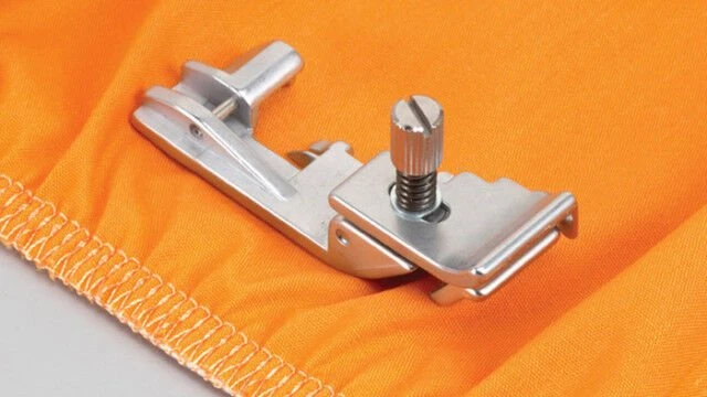 Confidently serge elastic by letting this foot take care of all the work. This foot provides even tension every time to prevent pulling and tugging on the needle. The adjustable guide and tension dial allow you to serge elastic with a finished uniform stretch.
