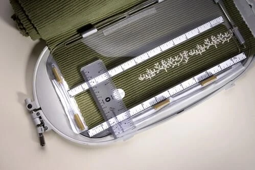 Translucent flexible rulers are designed to fit in the hoop (5?, 7?, 12? sizes included). Translucency makes it easy to view existing marks, target stickers, embroidery designs or sewn seams clearly.