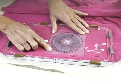 Includes large hole for inserting Target Stickers or marking fabric. Comes in two sizes to accommodate large and small hoops (6? x 6?, 7? x 12?). Translucency makes it easy to view existing marks, target stickers, embroidery designs or sewn seams clearly.