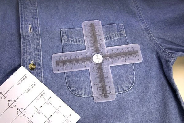 The professional method for planning embroidery layout on a project. Simply mark design placement with a Target Sticker or use Text Stickers for aligning text quickly and easily.