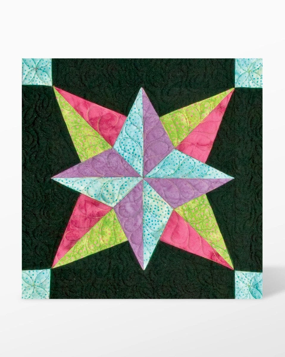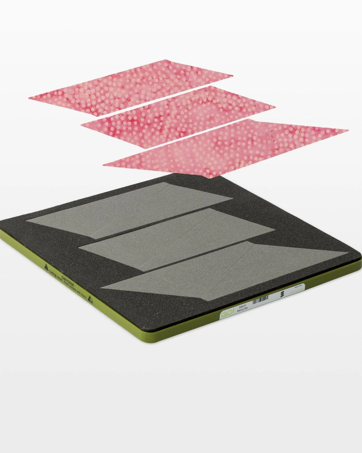 The GO! Blazing Star-12″ Finished Die by Eleanor Burns is a Block on Board® (BOB®) die that cuts a full five-color star block—all in one pass. No need for templates or complex measuring! Just fanfold your fabric, align with the die’s screen printed shapes, and enjoy effortless, precision cuts for background and star point shapes.