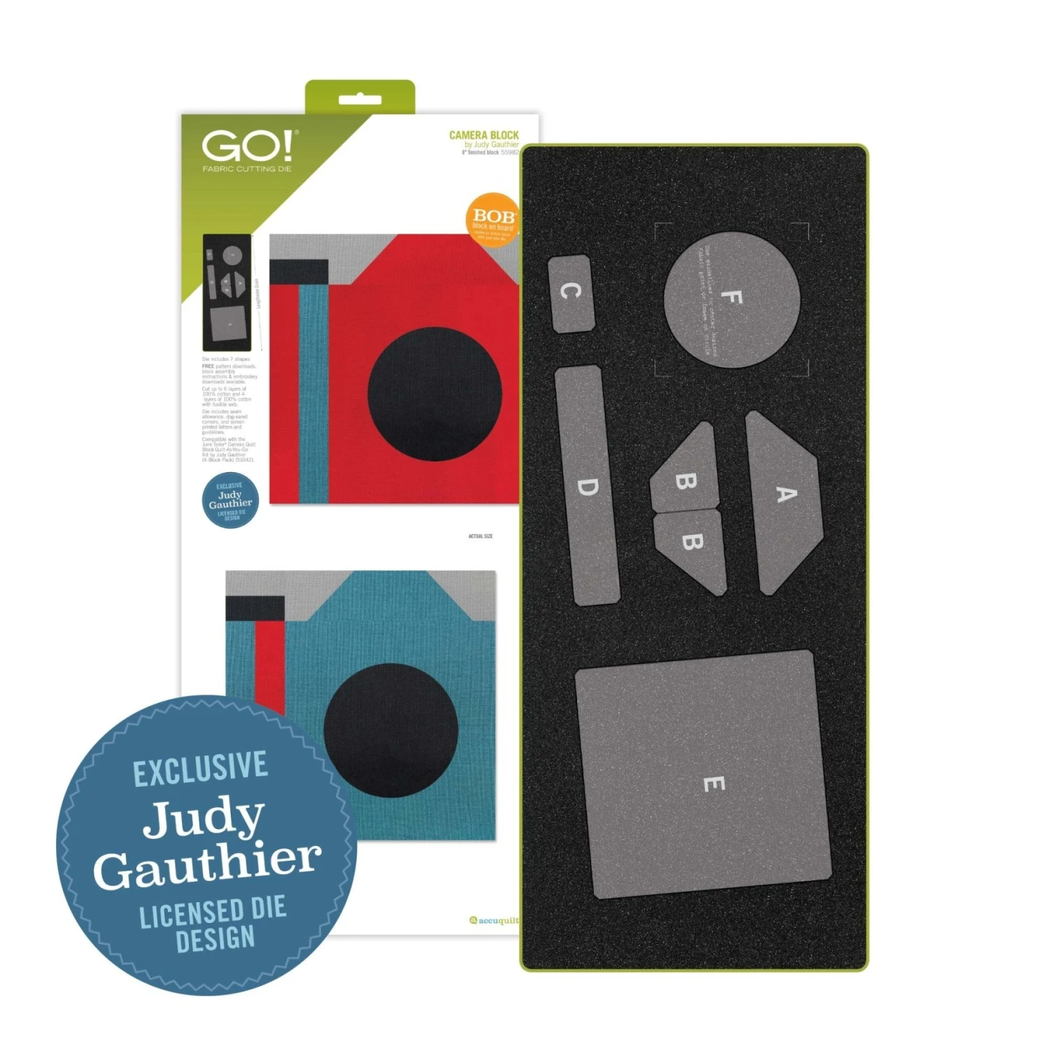 The GO! Camera Block-8″ Finished by Judy Gauthier Project Bundle is a fun, creative way to dive into die cutting with AccuQuilt. This bundle gives you the popular GO! Camera Block die, a matching quilt-as-you-go kit from designer Judy Gauthier, and the correct cutting mat so you can start right away—no extras needed.