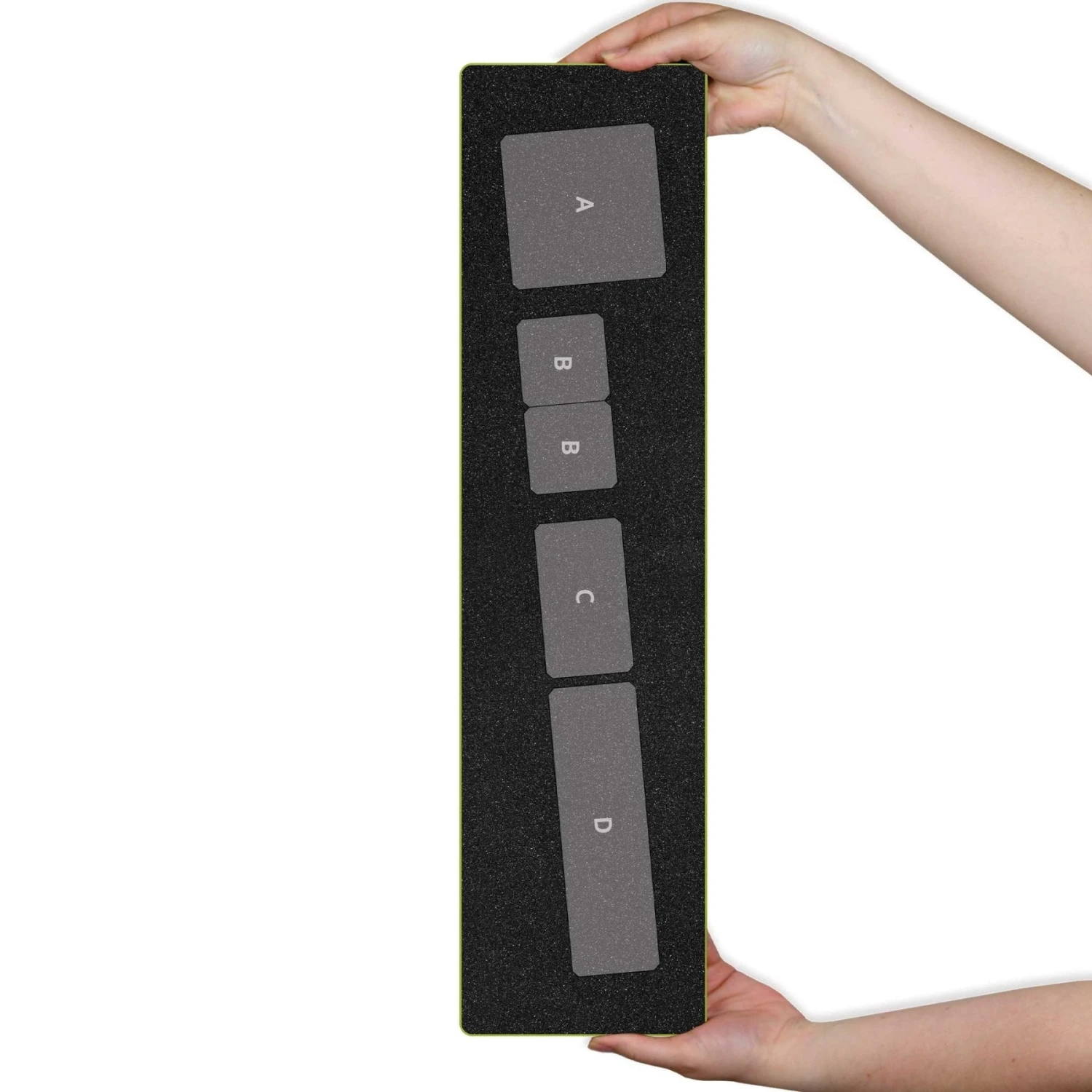 Cutting Tip: Place fabric on the lengthwise grain for best results. The die cuts one full block per pass when fabric pieces are placed over the labeled shapes: A, B, C, and D.