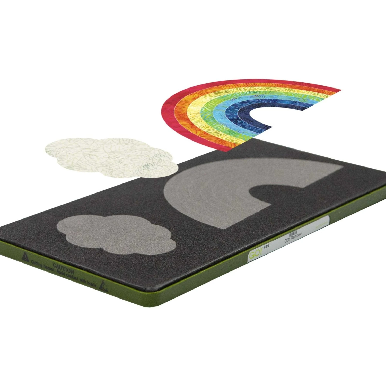 The GO! Rainbow Die lets you cut colorful appliqué arches and clouds quickly and precisely. With 8 total shapes, including 7 curved arches and a fluffy cloud, this die is perfect for playful wall hangings, baby quilts, and modern rainbow designs.