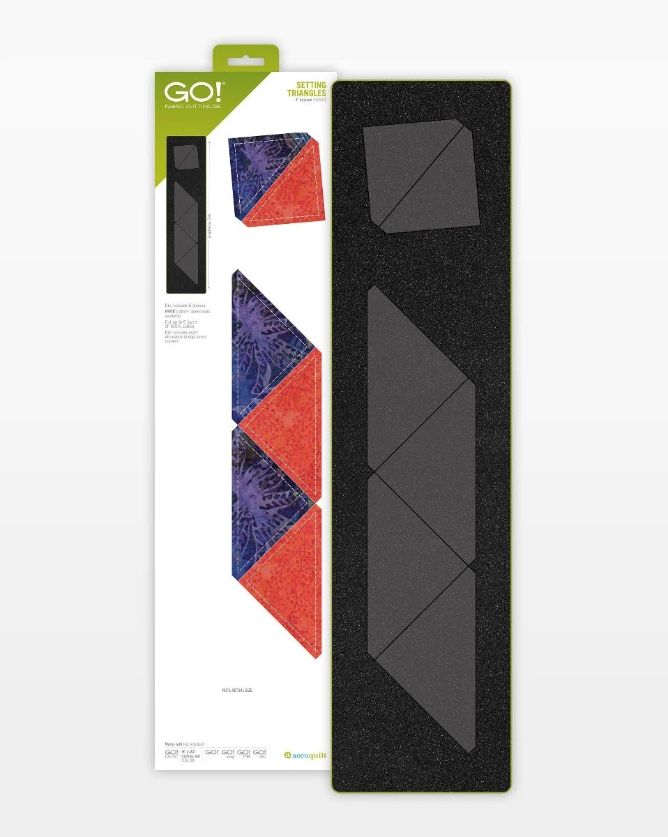 The GO! Setting Triangles – 4″ Finished Die takes the guesswork out of quilting on point. This all-in-one die includes both side and corner setting triangles—no complicated calculations or extra dies needed. With built-in ¼” seam allowances and dog-eared corners, your quilt layout stays neat and accurate from the first triangle to the last.