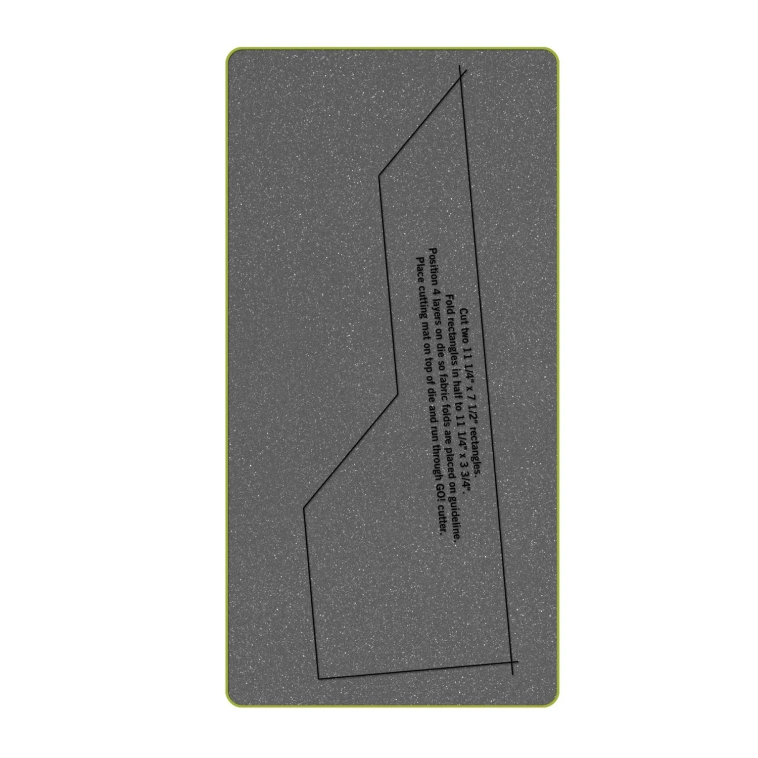 To cut one towel topper, simply fold two 11¼” x 7½” rectangles of fabric and one of batting to measure 11¼” x 3¾”. Place each piece on the die with the fold on the guideline, layer the batting on top, place your cutting mat, and roll it through your GO! cutter. It’s a quick, satisfying project that works great with themed or seasonal fabric.