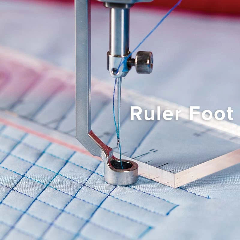- Heightened bend in foot clears most quilting rulers