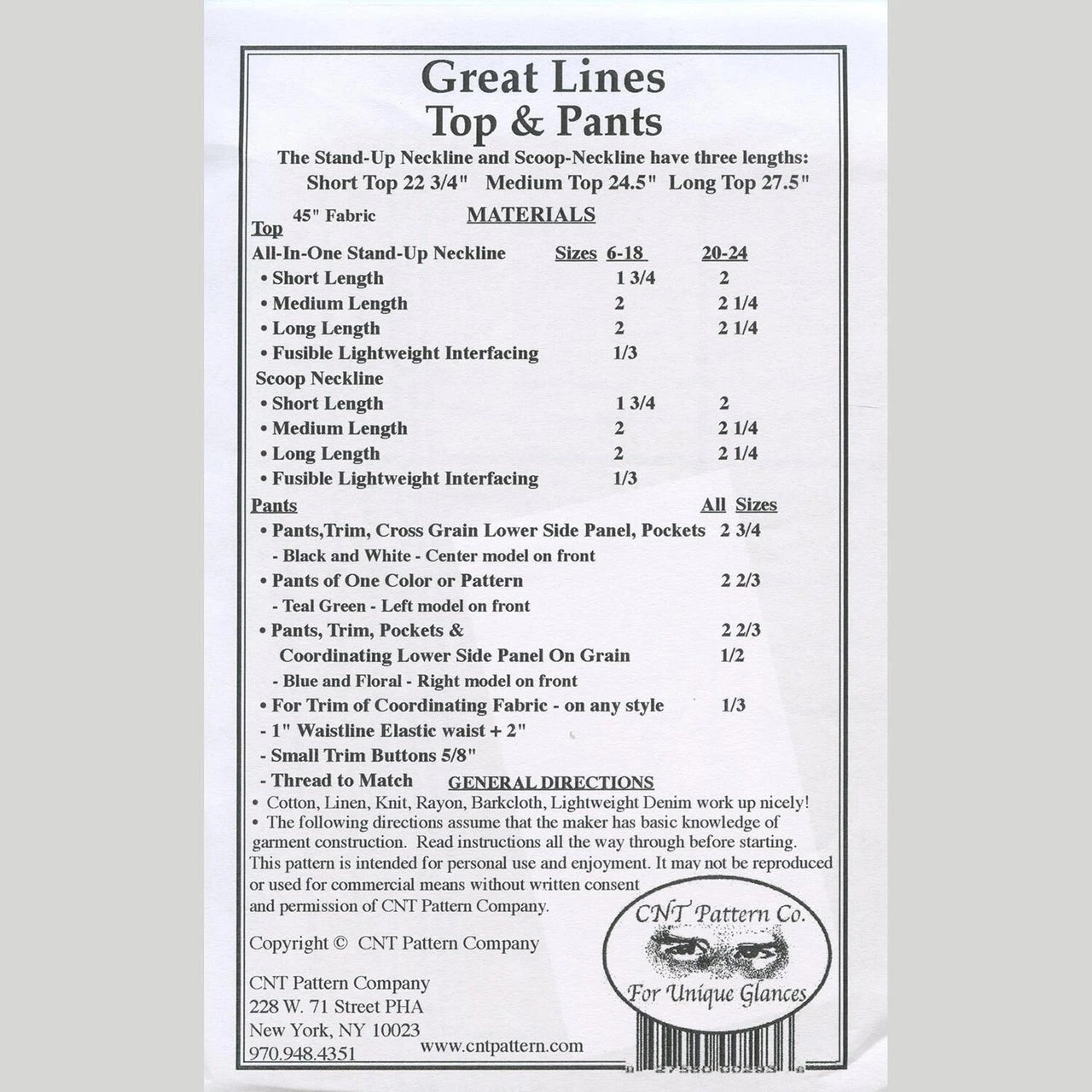 The Great Lines Top & Pants Pattern is a modern and flattering design that can be worn as a matching set or styled as separates. The easy-fit top includes your choice of a dramatic all-in-one stand-up neckline or a more classic scoop neck, both complemented by stylish elbow-length sleeves. The pants feature a comfortable pull-on waistband and a unique front side panel that can be either pieced or sewn all-in-one. Optional pockets add function to the form, making this an incredibly wearable outfit you’ll want to sew more than once.