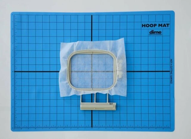 Silicone mat with printed grid provides a non-skid hooping surface. Easily find the center point of any size or brand of hoop. The printed grid allows you to instantly measure by simply placing the hoop down on the mat.