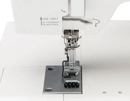 The extra-large bed space of 4” x 5.5” provides ample room for larger projects. Sew at speeds up to 1,000 stitches per minute (spm) to complete your projects efficiently. The free arm configuration adds flexibility for sewing cylindrical pieces like sleeves and hems.