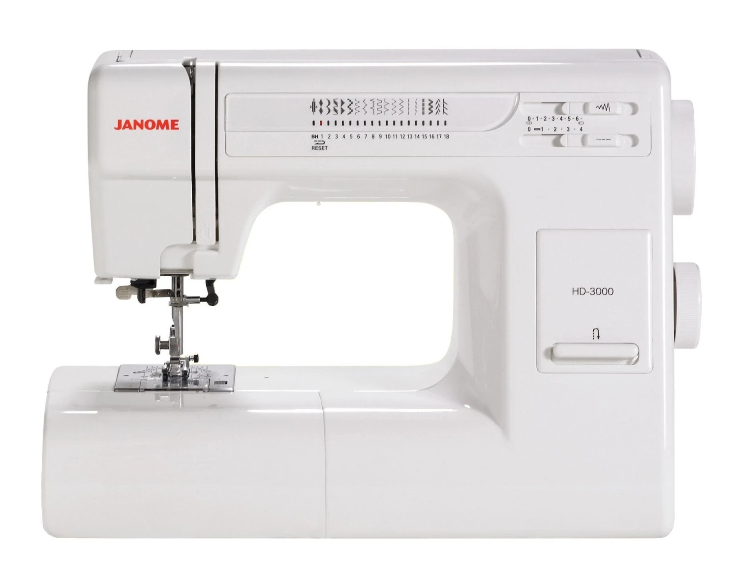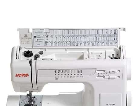 The HD-3000 is a heavy duty machine, perfect for a beginner or sewist looking to do a wide range of sewing. A handy instructional guide is located in the top tray door of the machine, which indicates the feet and stitch settings for a variety of sewing tasks. Heavy duty aluminum body and 18 stitches, including a one-step buttonhole give you the tools you need to handle any kind of sewing project. Stitch length and width adjustment are conveniently located on the front of the machine, and a hard cover comes standard for easy storage.