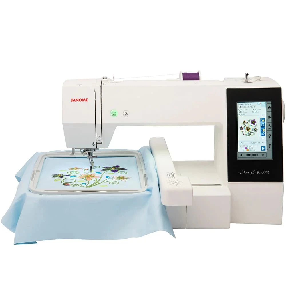 The Janome Memory Craft 500E is a powerful embroidery-only machine designed to help sewists personalize, embellish, and monogram with ease. With 160 built-in designs and 6 monogramming fonts, you’ll find inspiration for everything from garments to home décor.