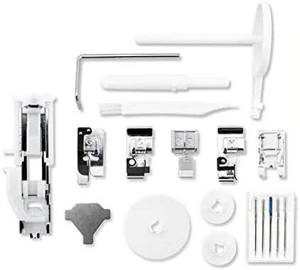Special features include the automatic thread cutter, when activated trims the top and bobbin thread at the same time, pulling the top thread to the underside of the fabric. Stitch elongation on satin stitches allows the stitch pattern to be elongated of up to 5 times the default stitch length; easy set bobbin system; auto bobbin winder system; built-in needle threader; needle up/down button; and an auto-lock stitch feature for precision locking off of stitches and patterns. The start/stop button allows you to sew without a foot control.