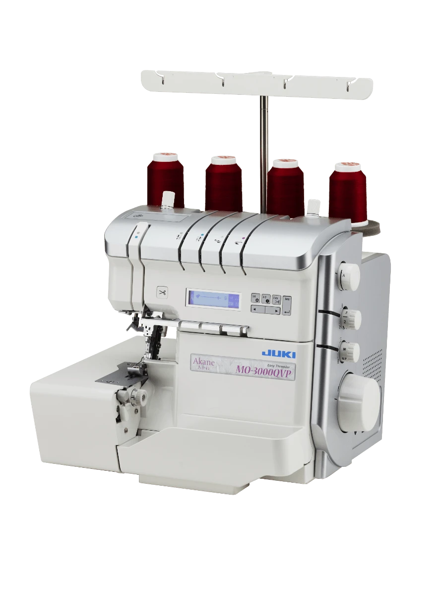 Serge like a pro with Juki’s Akane (ah-KAH-nay) MO-3000QVP 2/3/4 differential feed overlocker, with automatic thread supply and easy threader! With the MO-3000QVP, sewing will never end up being a hobby.