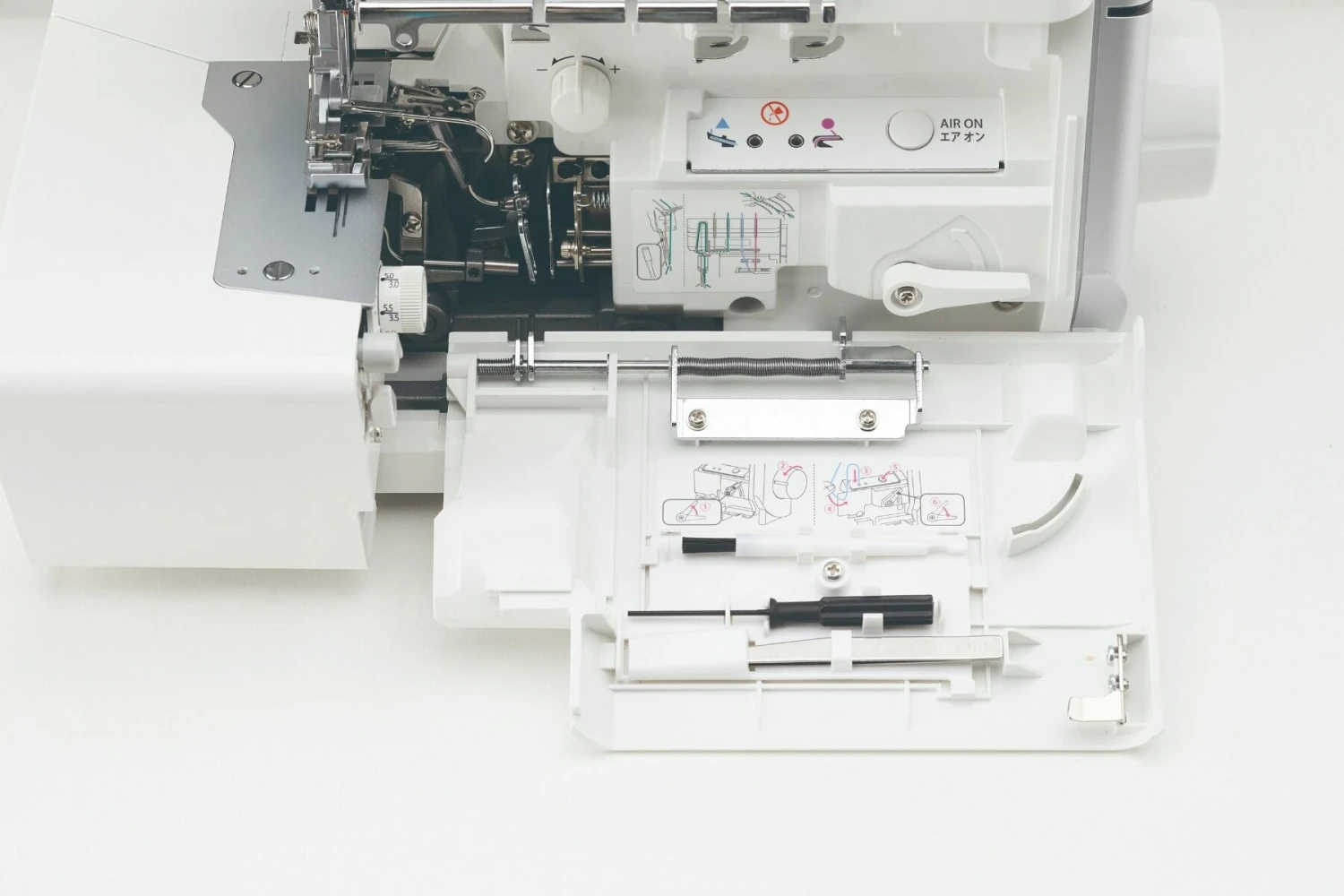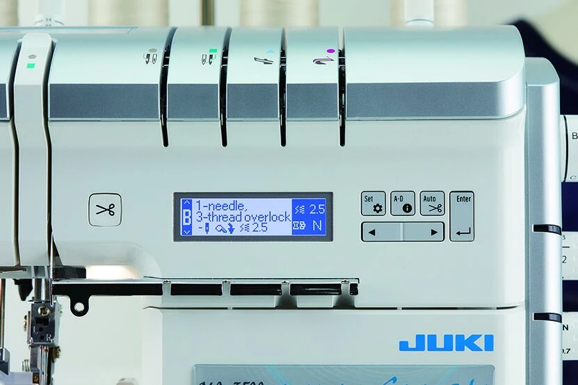 This overlock serger is equipped with new features to take your serging to the next level, including an automatic thread supply, a JUKI exclusive chain-off thread cutter, micro-lift of the presser foot, and effortless threading with the power of air! In addition, JUKI has added features including a wider throat area, a bright workspace with color temperature adjustment, a magnet needle tray, an LCD screen, and 2/3 thread conversion.