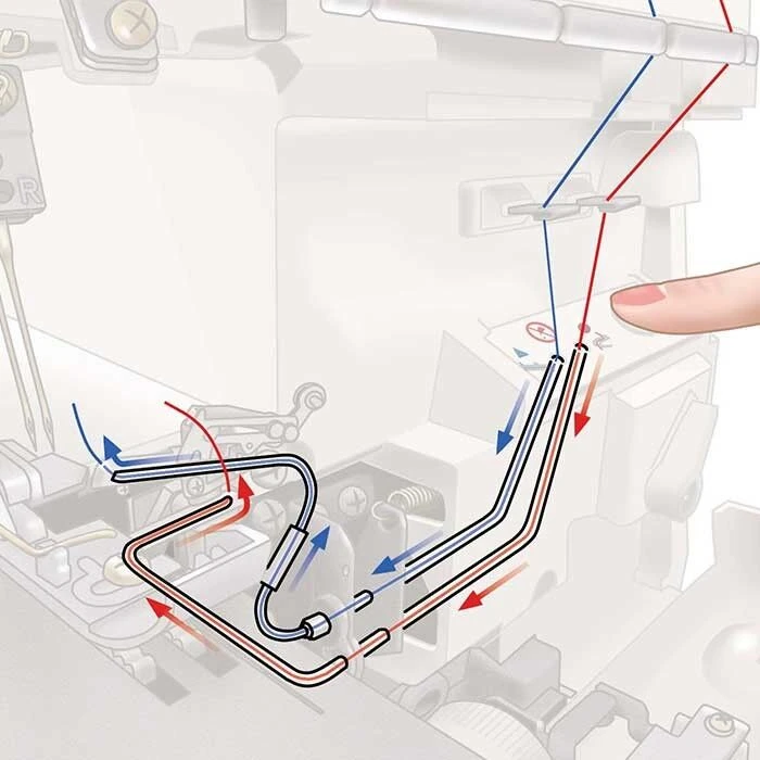 Achieve the ideal sewing with the newly enhanced, user-friendly serger, MO-2800! Effortless threading with the power of the air is found on JUKI’s MO-2800. Using the easy threader feature, easily thread the machine from the threading hole to the looper with the power of a strong whoosh of air sent from the electric motor. This special function makes it fast and easy when threading the upper and lower looper. In addition, the MO-2800 comes equipped with an automatic needle threader making threading a breeze!