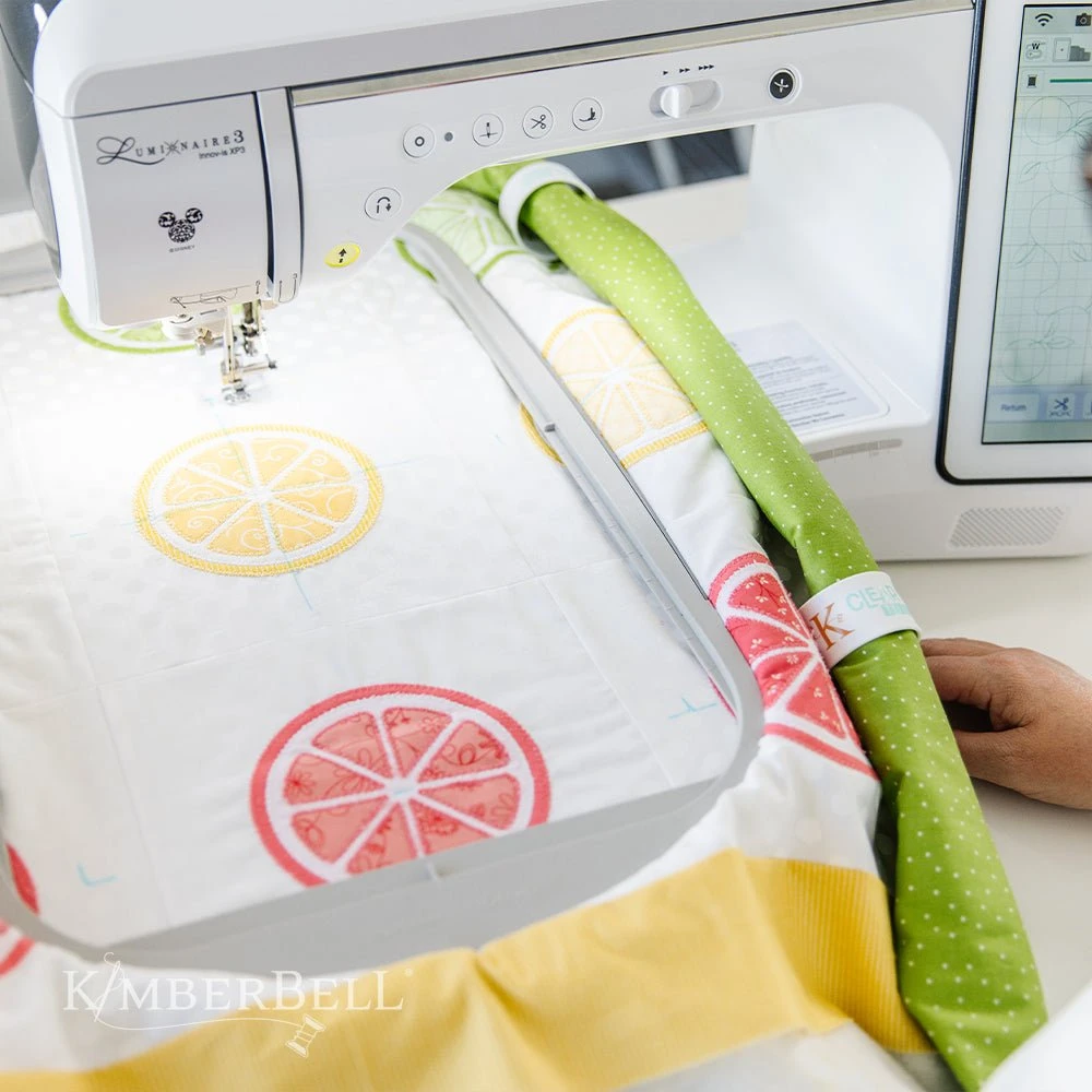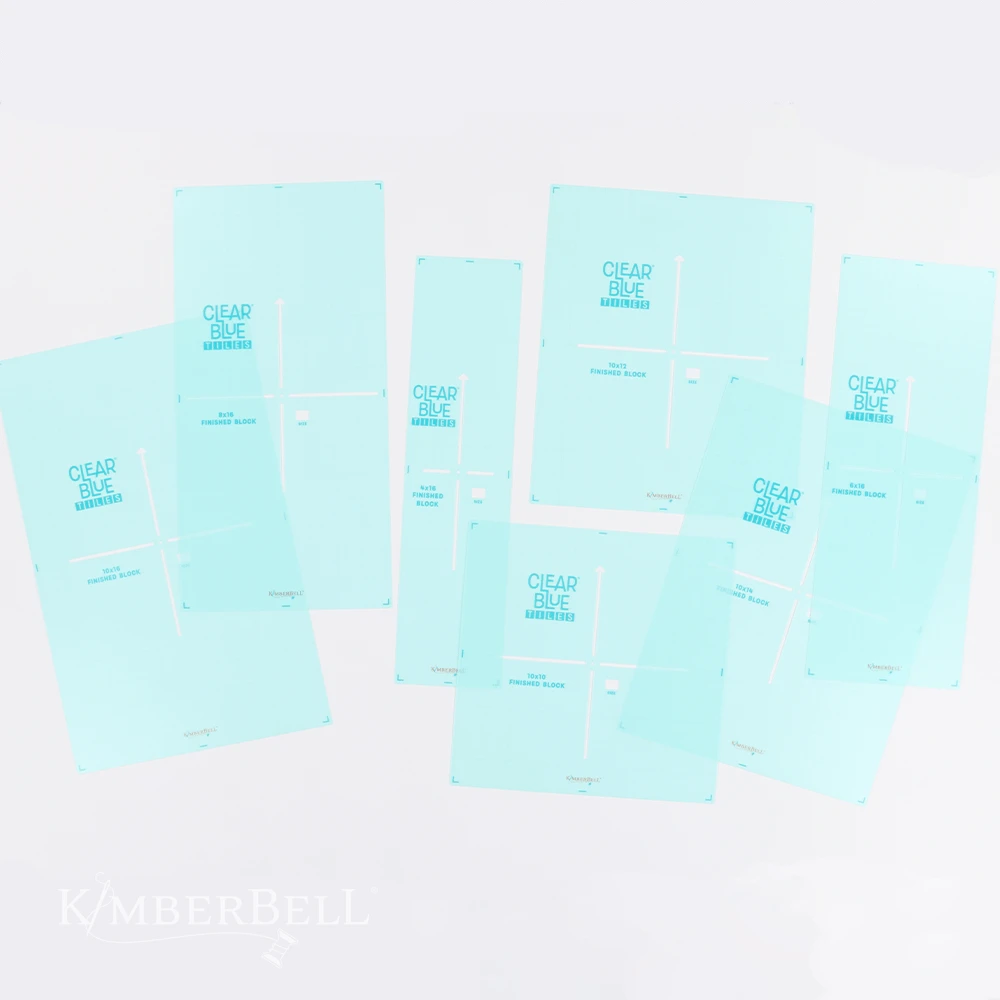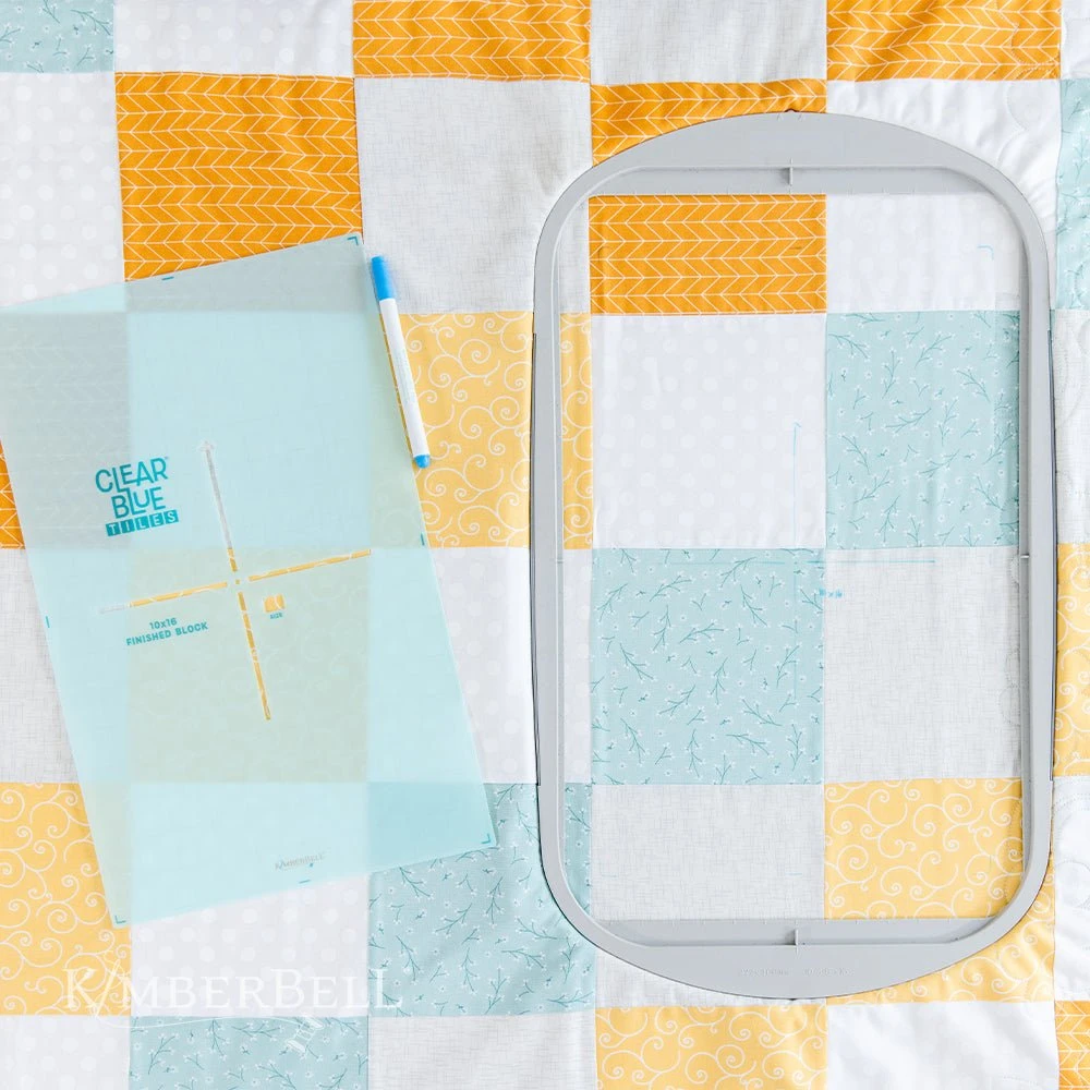 Kimberbell Clear Blue Tiles® are now bigger than ever! Our Expansion Set 2 includes 10×10, 10×12, 10×14, 10×16, 4×16, 6×16, and 8×16 sizes perfect for the very largest embroidery machine hoops. Use with Kimberbell’s designated large-scale background quilting designs and mix and match with 4×4 (and larger) tiles from your Clear Blue Tiles Essentials and Expansion Sets! With our Expansion Set 2, quilting large projects on your home embroidery machine has never been easier.