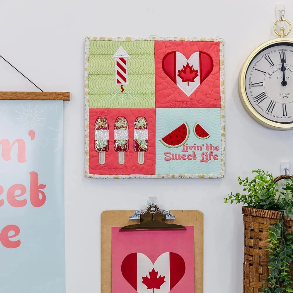 Create seasonal gifts and decor with Kimberbell Mini Quilts, Vol. 2: July-December! Made in 5×7 (and larger) hoops, each 12 x 12” mini quilt celebrates the second half of the year with darling techniques and beautiful blocks. Stitch each block on your embroidery machine, add optional background quilting*, and sew the blocks together on your sewing machine! From summer sun to festive fun, Kimberbell Mini Quilts are always in season. These designs comes on a disc.