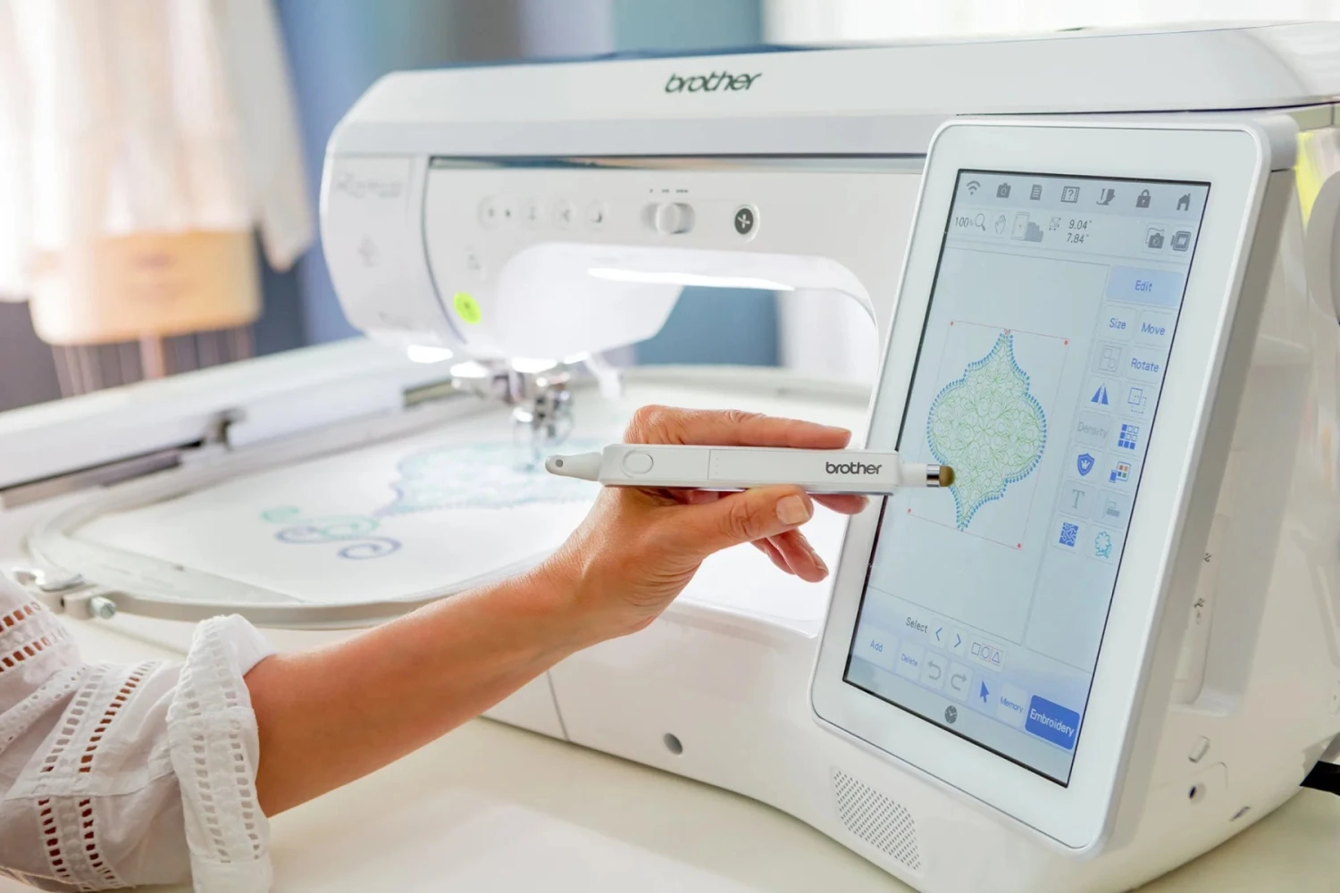 - 2-in-1 Sensor Pen: Adjust needle positions directly on the fabric for a hands-free experience.