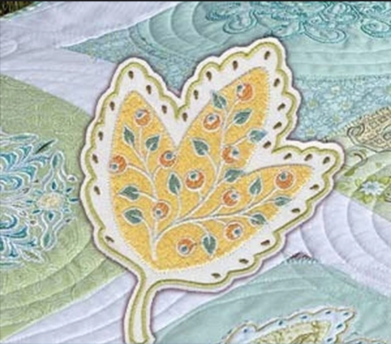 Modern Blossoms by Amanda Murphy is a modern embroidery collection in soft colors originally designed to coordinate with a fabric line she created. The designs feature leaves, medallions, paisleys, and appliqué.
